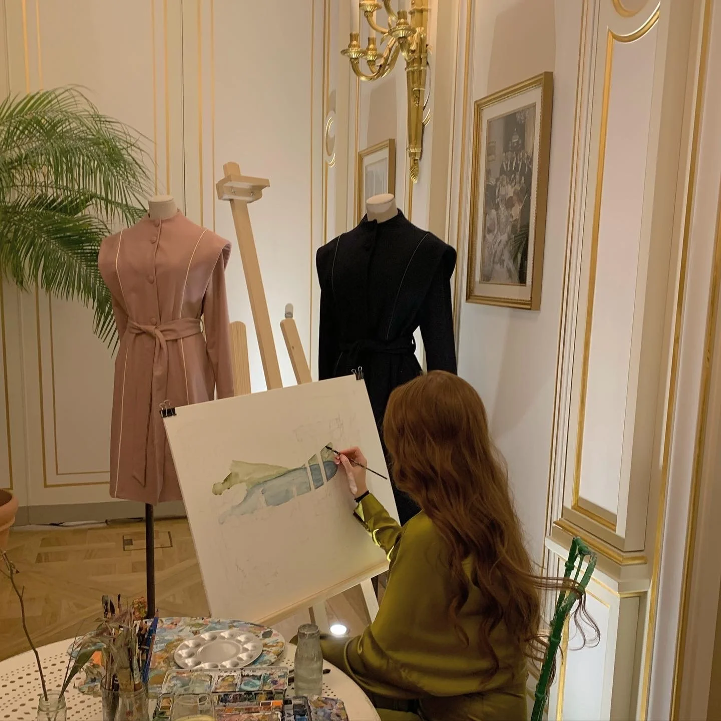 Projects Include : Live Painting at events (the guests, the outfits, the objects) - Textile Design (turning her artworks into prints for clothes) - Window Displays (Set design, store windows) - Packaging Design (for products, live event painting on products) - Invitation & Menu Design for events:weddings - Model as Talent - Hosting Workshops & Lunches - Content Creation - Creative Direction - Guest Lecturer - Fashion Illustrations…
