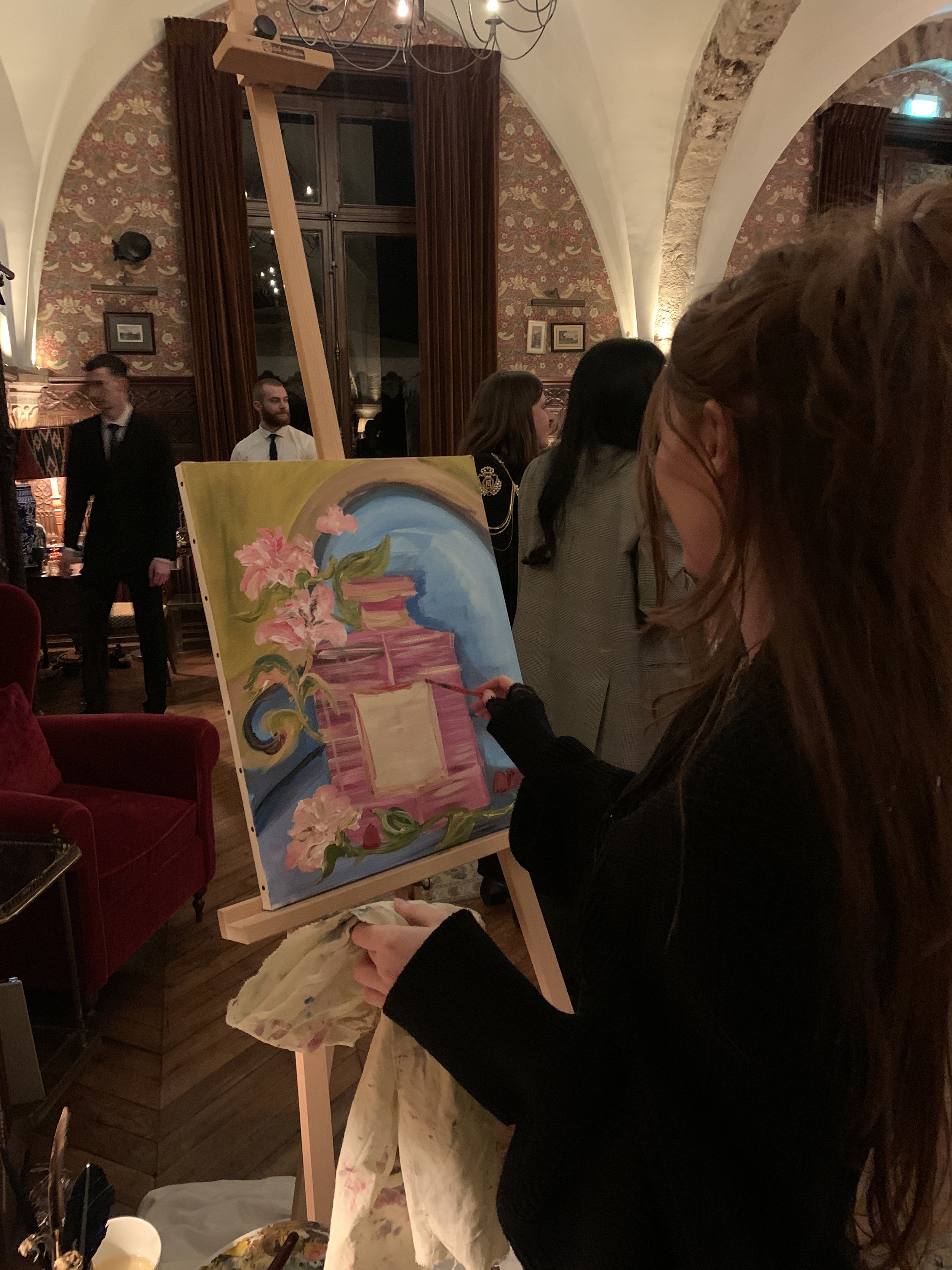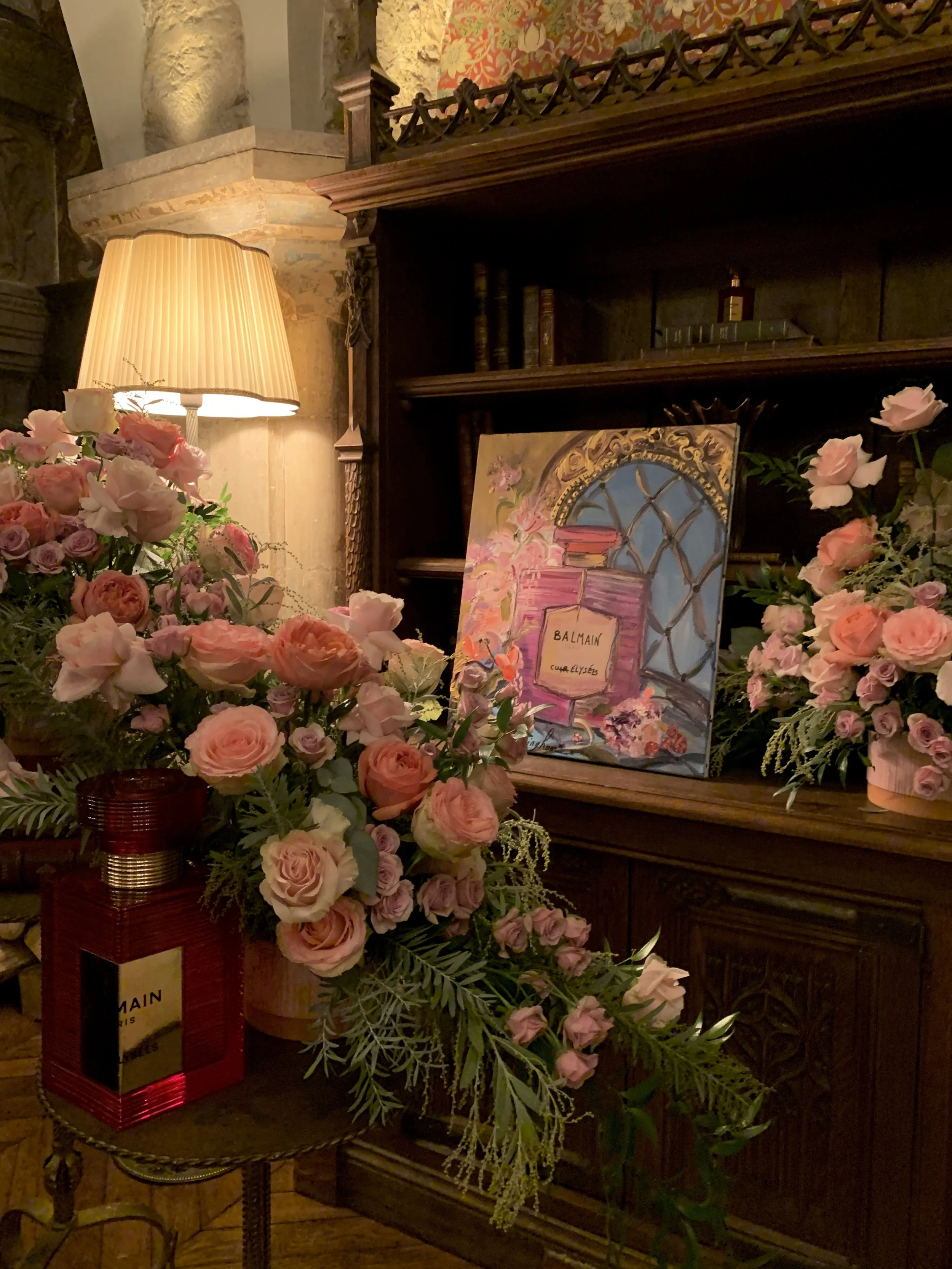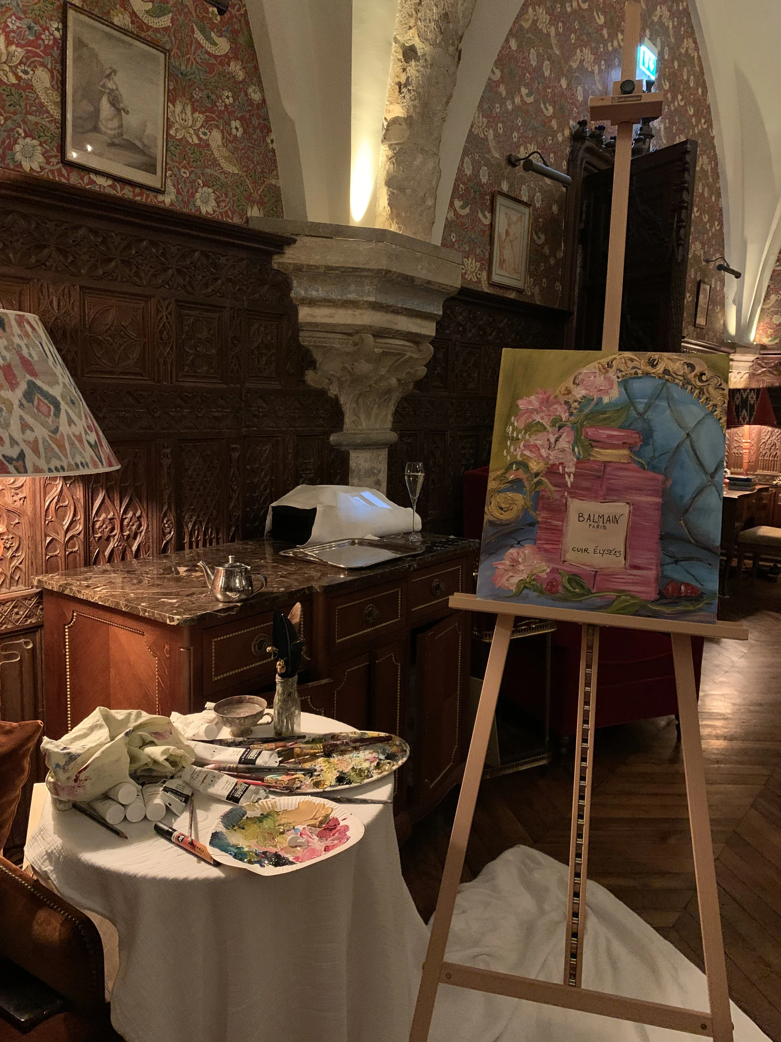 “Last night took a little French countryside escape to go Live Paint for @balmainbeauty @balmain their latest Perfume « Cuir Élysées » in the most magical @abbayedesvauxdecernay_hotel. thank you to the team for the warm welcome it was lovely getting to paint live in such a setting the decor was beautiful.”
