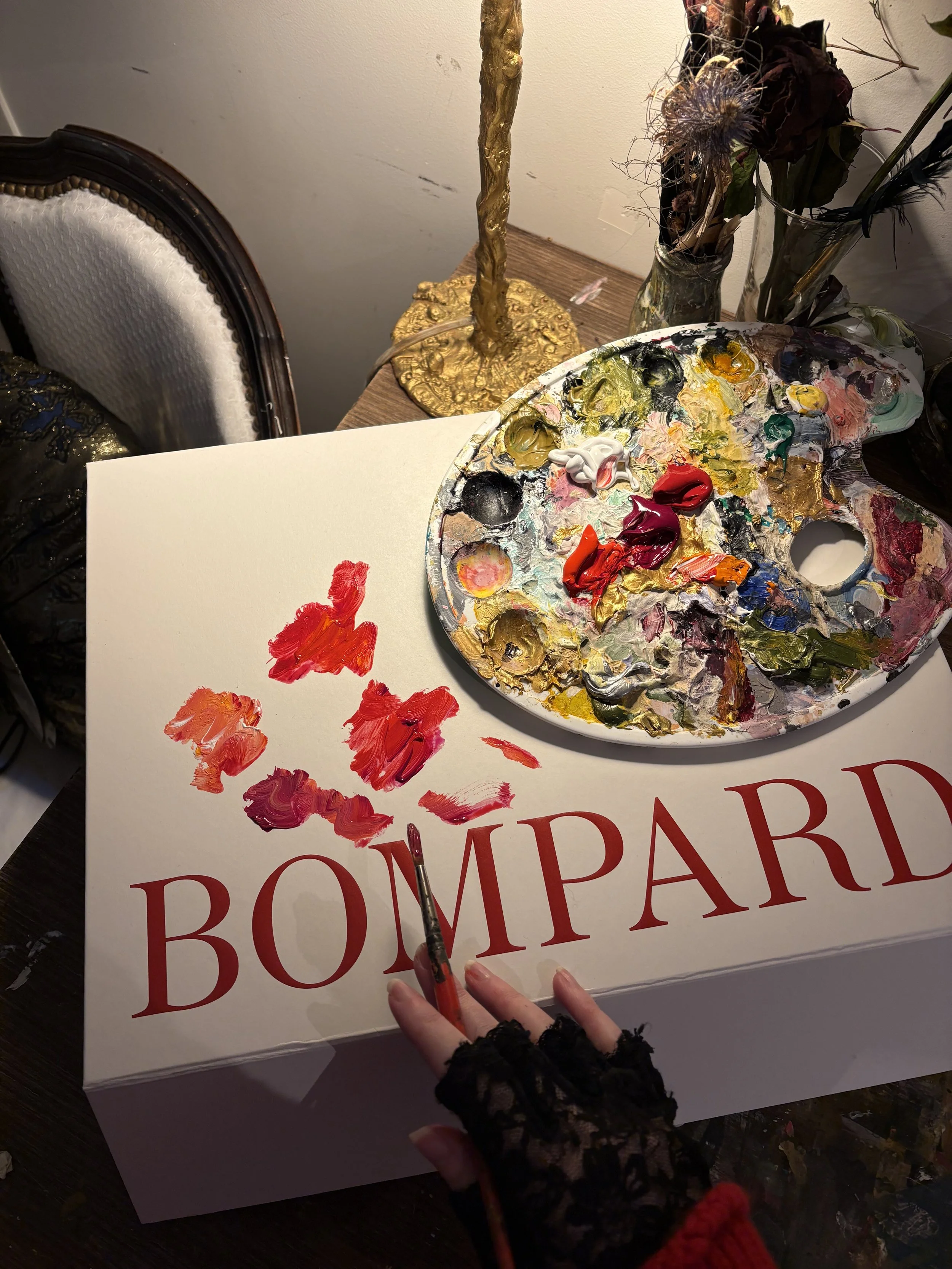 “For this new artistic collaboration #Bompard @bompard.paris invited the artist @rachellecunning to reinterpret Rouge Quarante, the Maison’s iconic shade created to mark forty years of colour and savoir-faire.