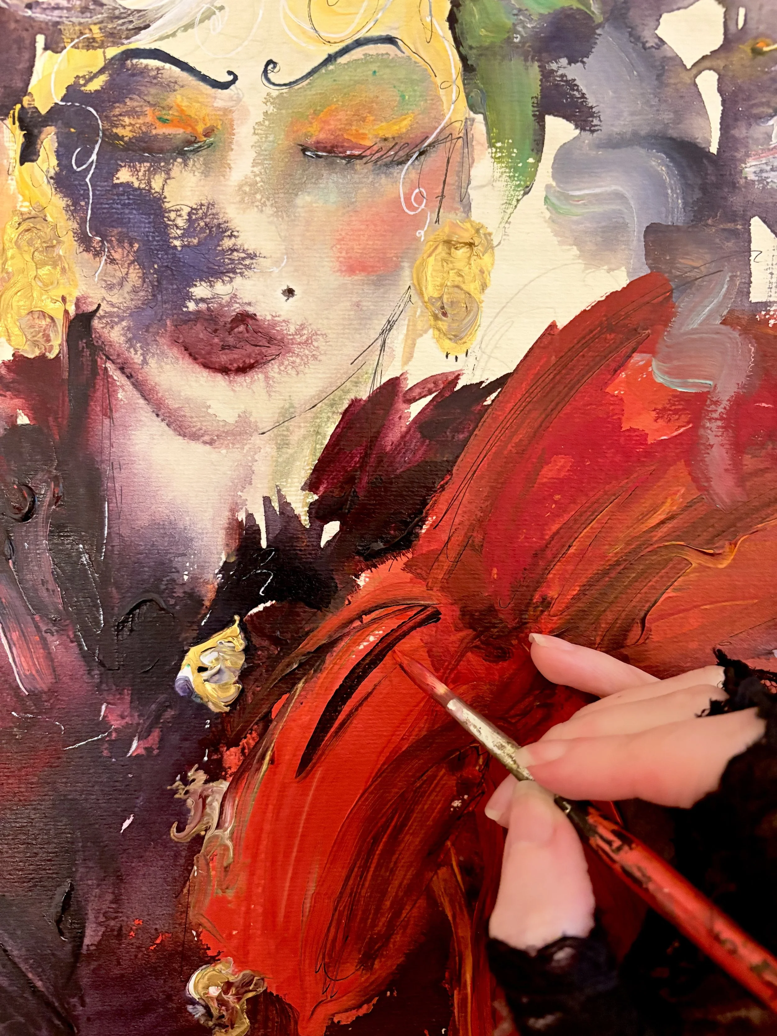 Inside her studio, red takes on a festive hue one of warmth. Enveloping the painting like a Christmas light left on after dusk. More than a color, Rouge Quarante becomes a seasonal emotion: warm & vibrant. Conceived as a gift, Rachelle Cunningham’s artwork is offered like a present, an expressive gesture to mark the season of giving.