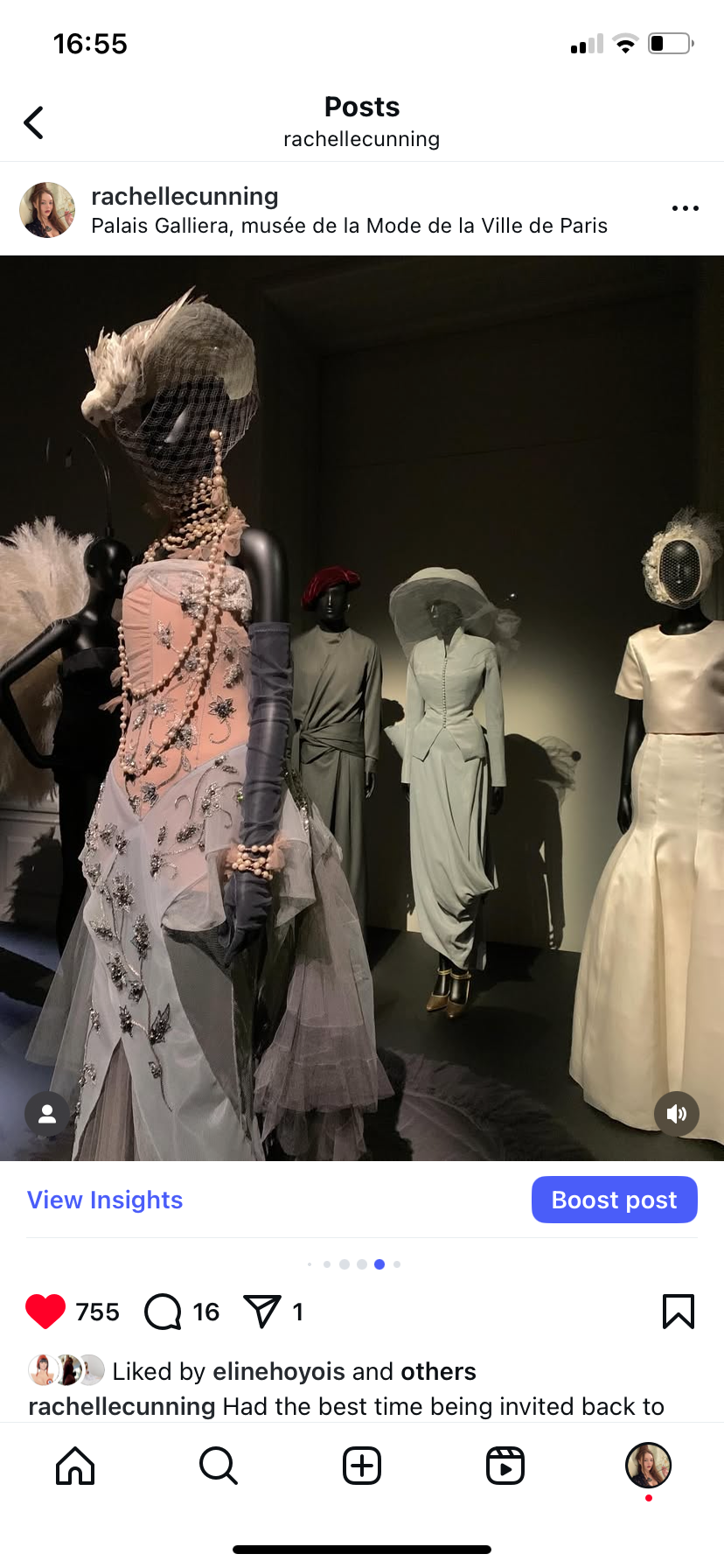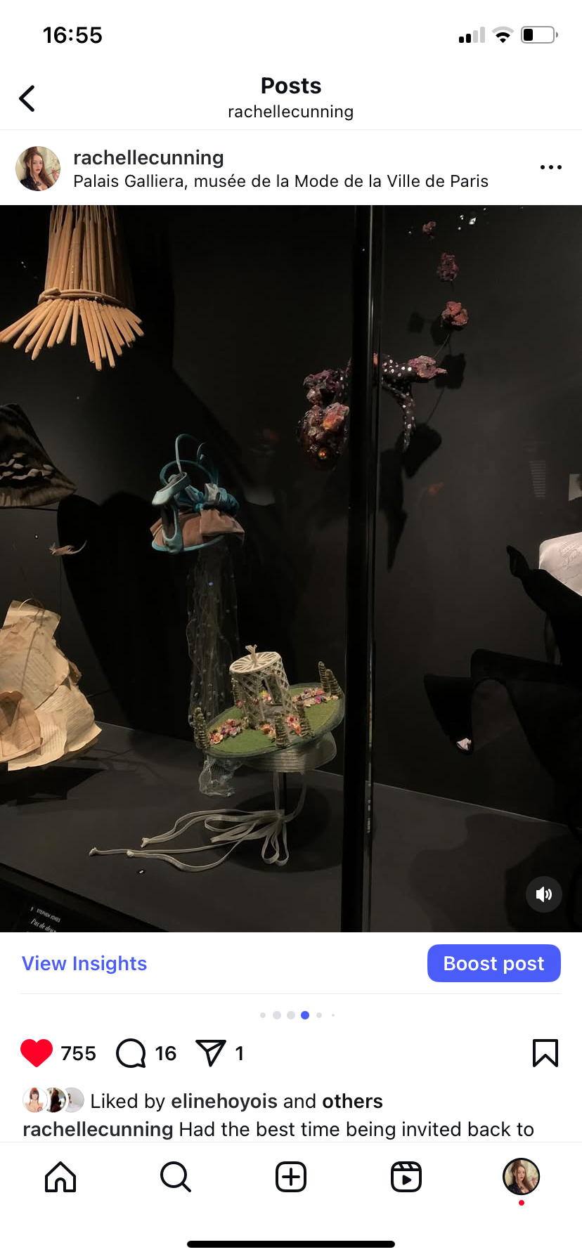 For the promotion of their new exhibition “Stephen Jones, Chapeau D’Artiste”, Palais Galliera Musee de la Mode invited Rachelle Cunningham to come visit the show before released to the public and work with the iconic Stephen Jones. She was asked to paint a two fashion paintings inspired by the historic hats on display. She was given for the second time a “Carte Blanche” to paint what she loved from the exhibition, focusing a lot on the details of the textiles of the exhibition. She created two reels of her painting the pieces to be posted in collaboration with the musuem& Stephen Jones. Used for their socials as promotion for the exhibition.